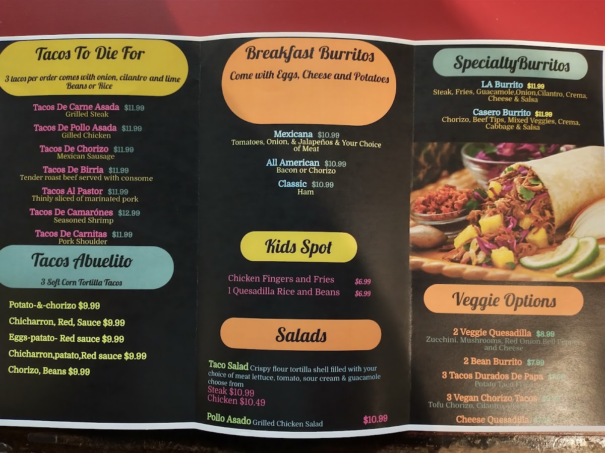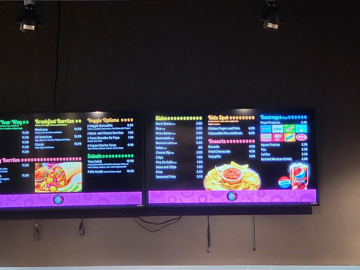 Grilled tomatoes, onion, and jalapeños fried potatoes 2 eggs, your choice of bacon or chorizo