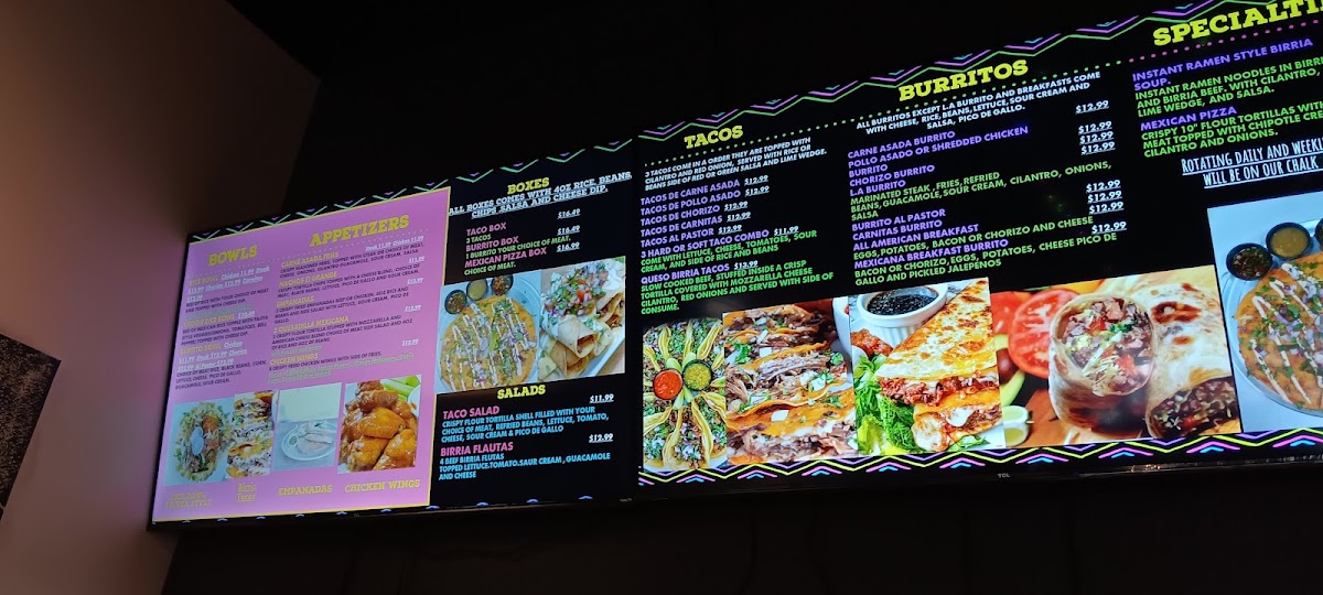 Flour tortilla grilled and covered with mozzarella cheese, birria, cilantro, and onions. Topped with a grilled tortilla, drizzle of chipotle sauce, cilantro. and onion. Served with a side of 4oz consume and 2oz salsa verde.