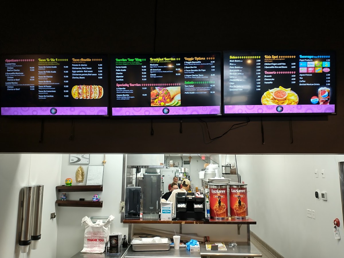 3 tacos (must be all the same), choice of protein, topped with cilantro and onions. Served with a side of rice and beans, 2oz cheese dip, 2oz salsa, 2oz chips salsa, and chips.